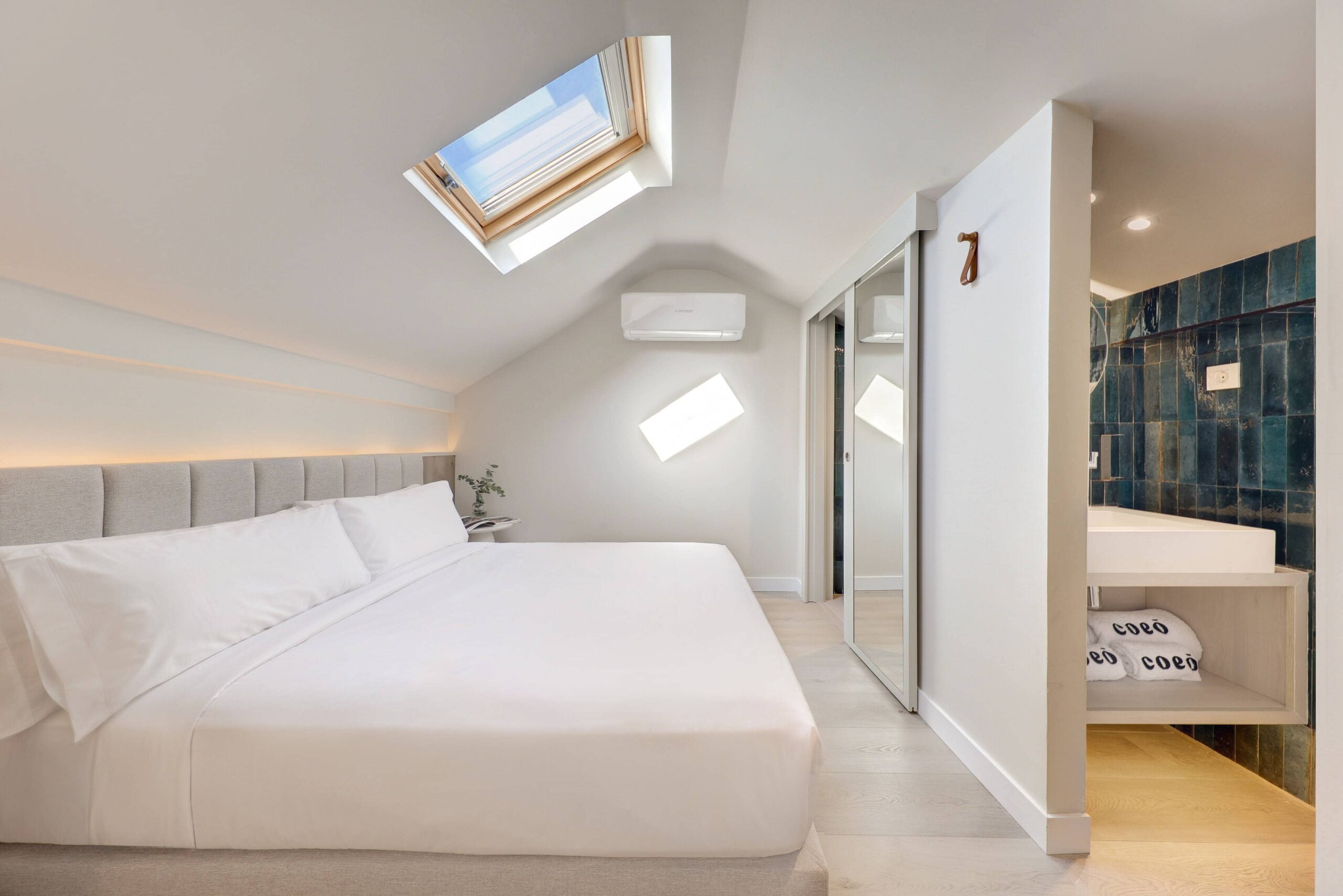 Además, nuestro sistema de cerradura inteligente permite hacer el check-in y el check-out sin esfuerzo, dándote un control total de tu tiempo. Cuando necesites un poco más de atención, solo tienes que solicitar con antelación nuestro servicio de limpieza o el desayuno en la habitación a través de WhatsApp. Nuestra recepción 24/7 en Coeo Beatas está a tu disposición y a pocos metros de distancia.