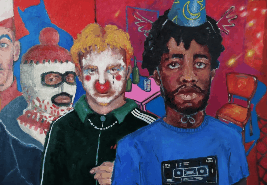 Luis García, a Venezuelan artist self-exiled for about a decade, has lived in wild cities such as Maracaibo, Bogotá, and Quito. He has developed a language rich in symbols and color that illustrates his daily life and experiences. His autobiographical work serves as a travel log that has evolved with every place he has lived in and every person portrayed in his pieces—sometimes strangers from a single night, sometimes friends who become part of his creative journey.
